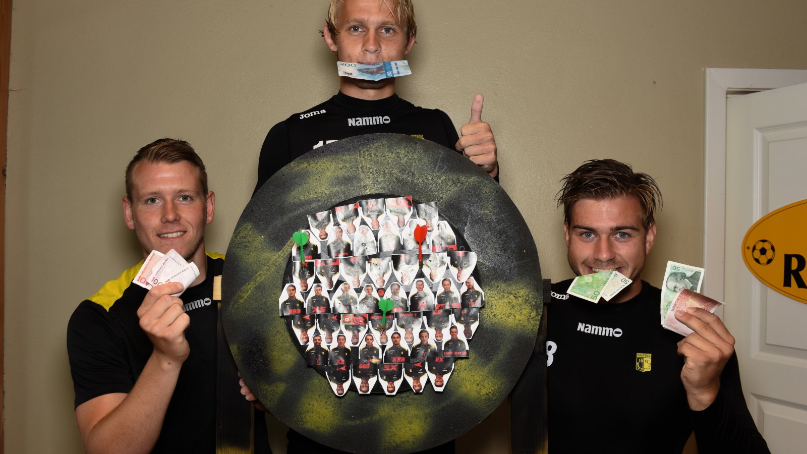 Da raufossfotball.no var innom garderoben var det Nicolai Fremstad som var taperen og som måtte kaste en siste gang. Han traff symbolet X6 på dartskiva. Noe som betyr at de opprinnelige 50 kronene skal ganges med 6. Den totale boten for unge Fremstad denne fredagen kan dere jo regne ut selv…