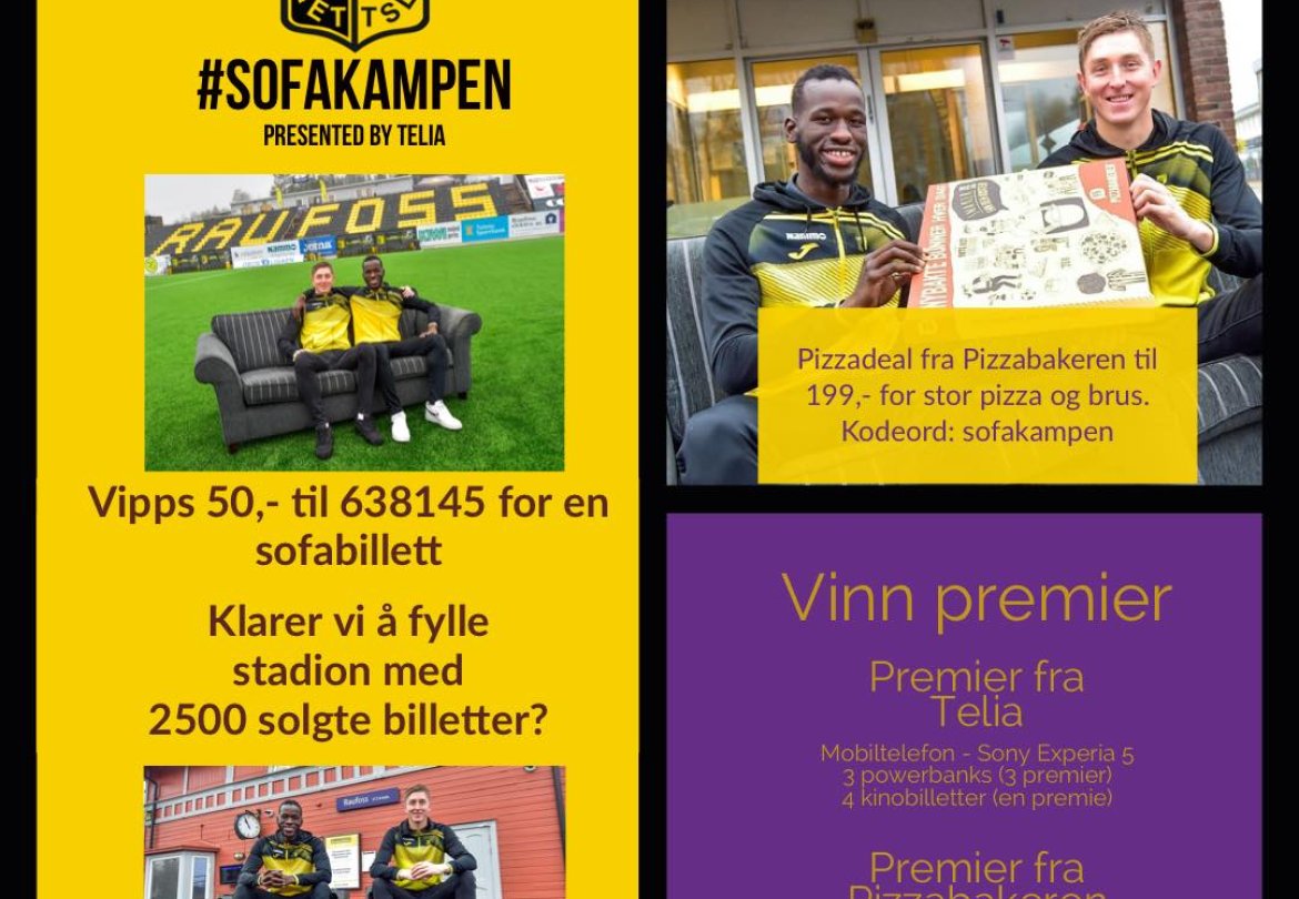 Bli også med å støtt oss i #SOFAKAMPEN Vipps 50 kr til 638145 for en Sofabillett. Du er da med i trekningen av fine premier fra Telia og Pizzabakeren.