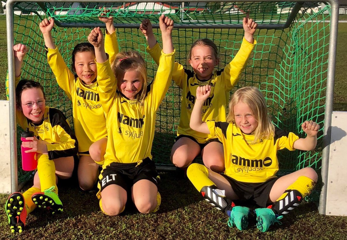 Dette er en glad gjeng som har vokst siden oppstart med treninger i mars 2019, og mange har debutert på fotballbanen under vårsesongen.