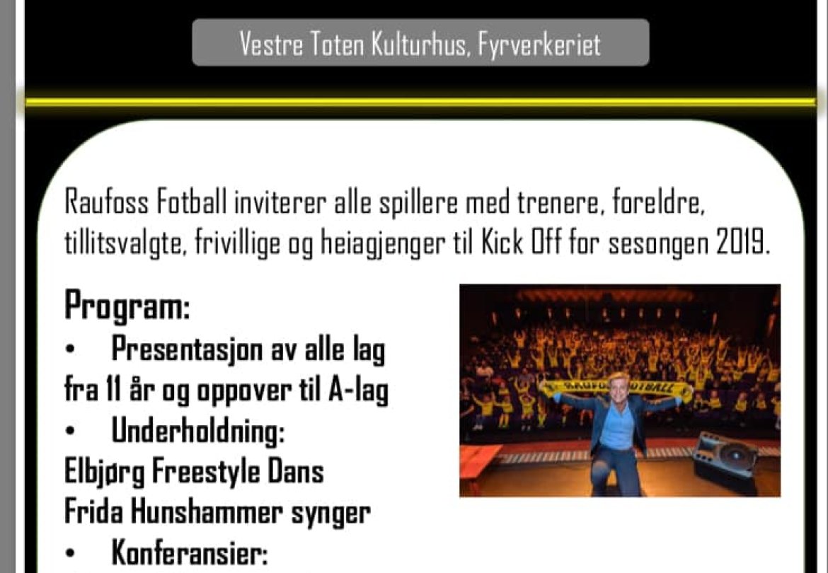 Selv om vinteren fremdeles ligger som ei tjukk dyne over Raufoss, nærmer det seg seriestart for store og små i Raufoss Fotball. Vi avholder likegodt tre kick off foran 2019-sesongen! Hele klubben kick off