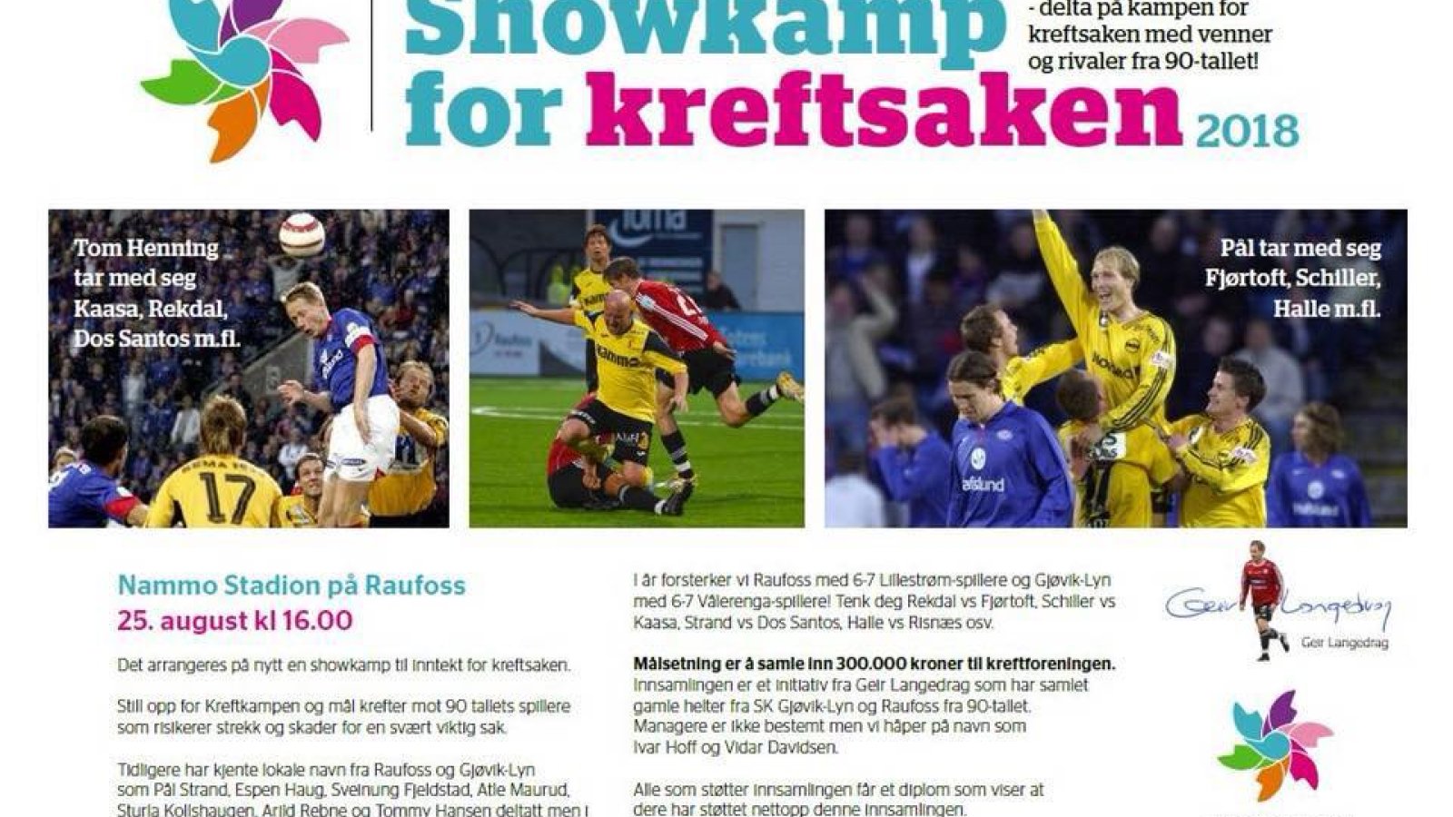 Førstkommende lørdag inviterer vi til en spesielt viktig fotballkamp på NAMMO Stadion: Årets kreftkamp.