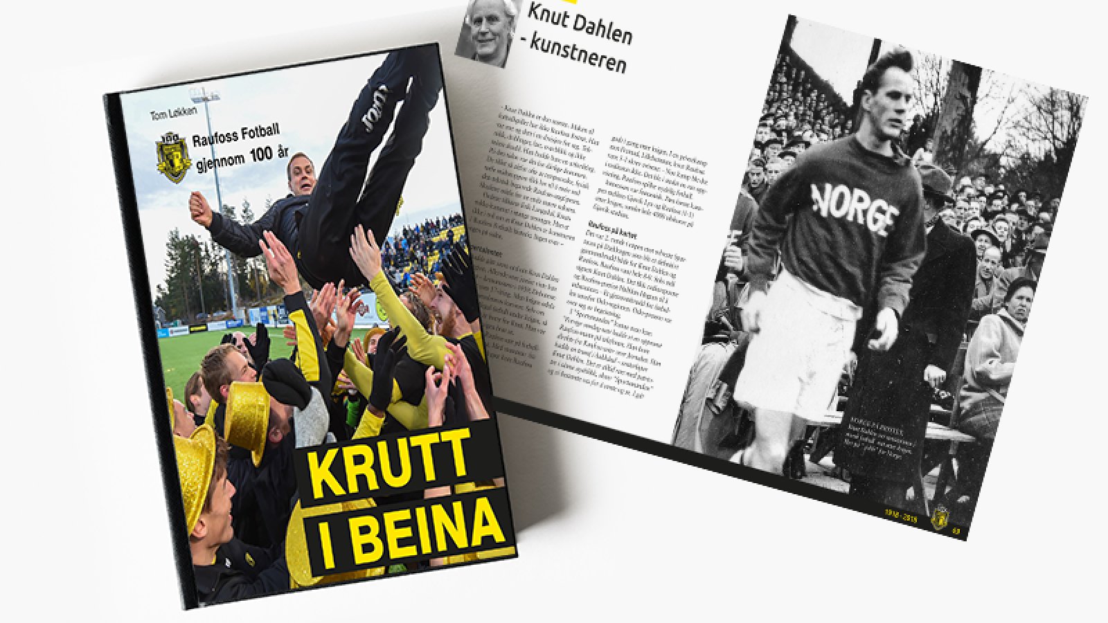 Endelig! ”Krutt i beina” Raufoss Fotball gjennom 100 år, er på nesten 400 sider og byr på det meste av både opp og nedturer i klubbens stolte historie. Raufossi100