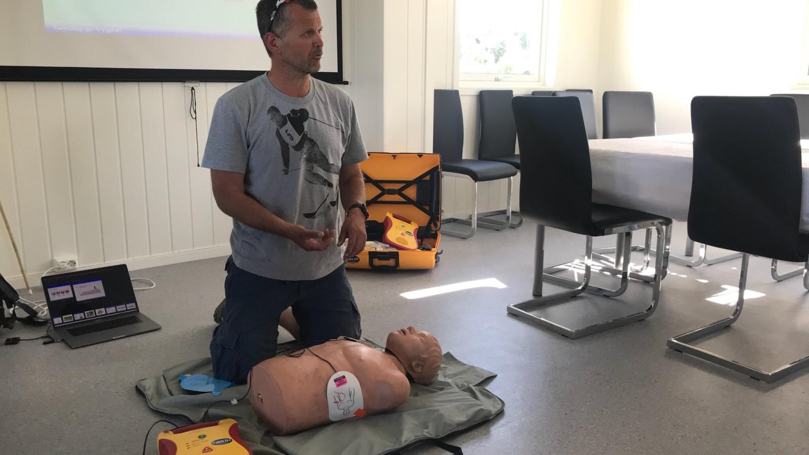 Deltakerne fikk en god innføring i grunnleggende førstehjelp, samt opplæring i bruk av hjertestarter. Sjur er en veldig erfaren instruktør, og har evnen til å formidle på en enkel og lettfattelig måte.
