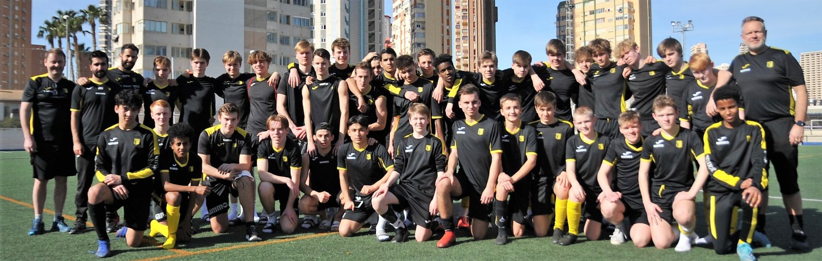 Smile gjør også både U16 og U19-gruppa. 40 spillere og fem trenere/lagledere trives utmerket i sommervær på treningsfeltet mellom høyblokkene i Benidorm. At den spanske sommersola meldte sin ankomst sammen med Raufoss-gutta demper heller ikke på stemningen.