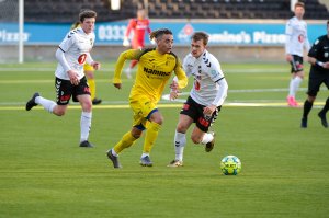 Det ble tap mot Godset i Drammen i kveld, men viktigst av alt: du verden så godt det er å være igang igjen! Nykommer Håkon Leine fikk også sine første spilleminutter i Raufossdrakta. Her sammen med Oskar Løken og Matias Belli. (bildet)