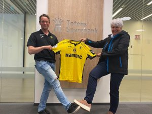 Totens Sparebank har gjennom mange årtier vært en trofast støttespiller til Raufoss Fotball og banklogoen har selvsagt en sentral plassering på brystet på alle klubbens drakter. Vi er glade for at Totenbanken har signert en ny avtale som vår hovedsponsor foran 2020-sesongen. På bildet: Avdelingsbanksjef Unni Hoel demonstrerer Wuhan-shake med Raufoss Fotballs Jørn Ola Formo.