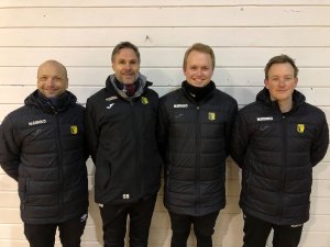 Vi er veldig glade for at Ståle Bokalrud fortsetter som trener for damelaget. Sesongoppkjøringa startet i kveld, og Ståle beholder kontinuiteten i trenerteamet. Bildet: (fra venstre) Dag Stian Lindstad, Ståle Bokalrud, Vetle Vangstuen og Trond Børresen