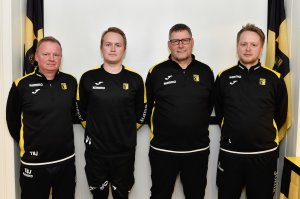Hovedtrener for team rekrutt jenter er Thomas Nauf Johansen (helt til venstre). Med seg har han (videre fra v.) Vetle Vangstuen, Bjørn Aspelien og Adrian Lund. Også her er det meget god kontinuitet og kvalitet i trenerteamet.
