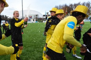 Martin Petterson Heiberg (22) sprettet champagnen etter opprykket i fjor høst. Han har vært i Raufoss Fotball siden han var 14 år og har gått gradene i gult og svart. Nå forlenger han kontrakten sin til å gjelde ut 2020-sesongen. Det samme gjør Oskar Johannes Løken og Stian Simenstad.