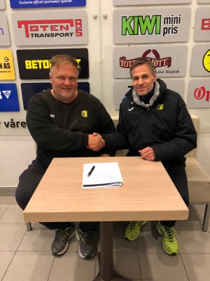Ny trener for våre a-lagsjenter er nå på plass. Vi er veldig fornøyde med at tidligere assistenttrener Ståle Bokalrud har takket ja til hovedtreneransvaret. Her med daglig leder i Raufoss Fotball, Bent Dalby (bildet)