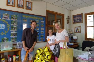 Noen familier drar på badeferie ved middelhavet - andre familier gjør det på denne måten: Familien Kristiansen/Ringstad tok turen til Kambodsja og Laos, med på lasset var gule fotballtrøyer og to nett med fotballer fra Raufoss. Til glede for mange barn i en barneby i Phnom Penh.