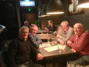 RIL-Boys bestående av fra venstre, Tron Strand, Ørnulf Myhre, Gunnar Kleven og Hans Lage Hagen seiret i kveldens jubileumsquiz på Retro Bar.