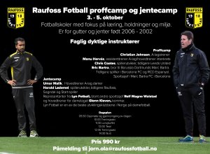 I høstferien blir det ProffCamp for ungdom i regi Raufoss Fotball. Vi har samlet et knippe kompetente instruktører som skal inspirere og engasjere. Bli med!